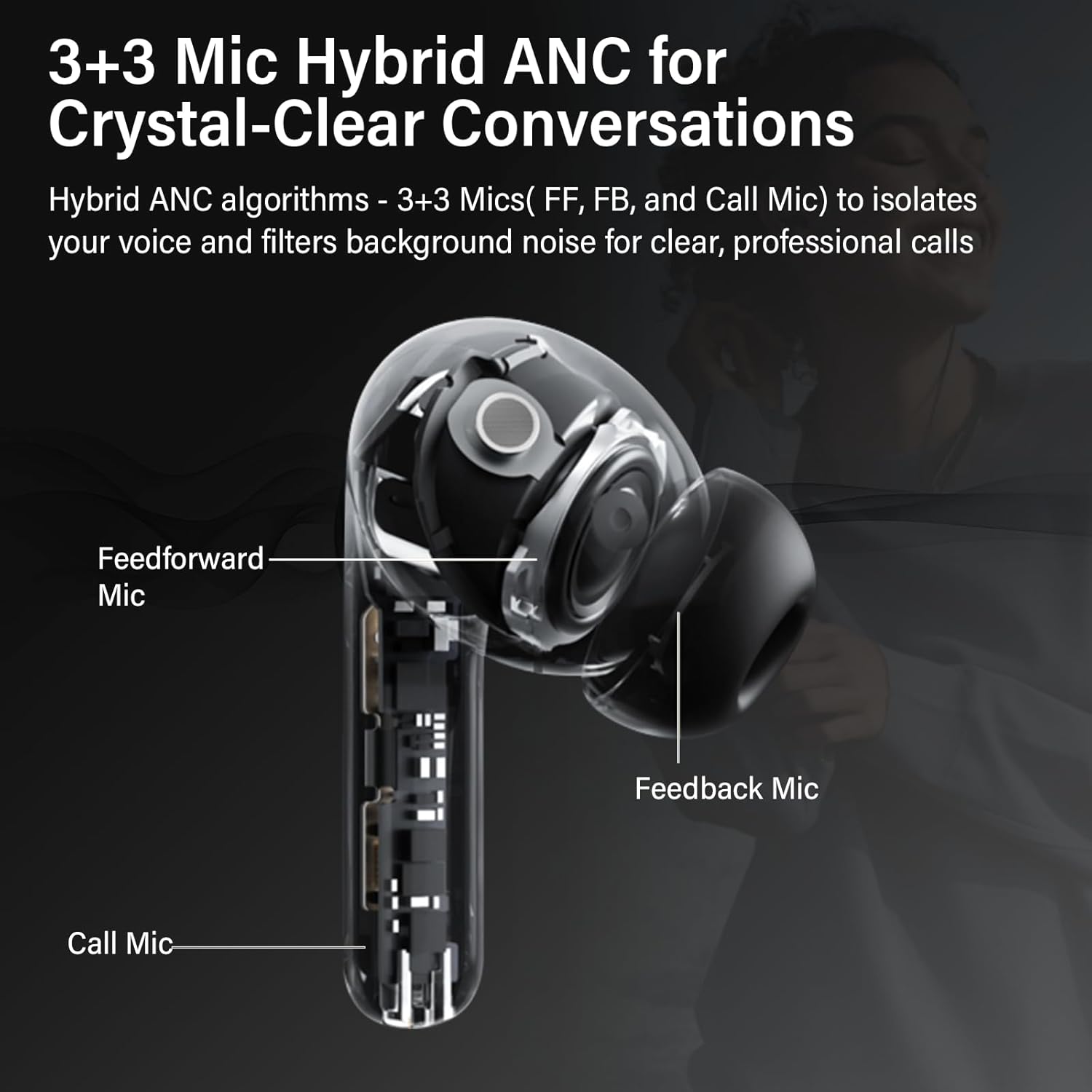 Six AI microphones ensure your voice is sharp and clear, even in crowded or noisy environments.