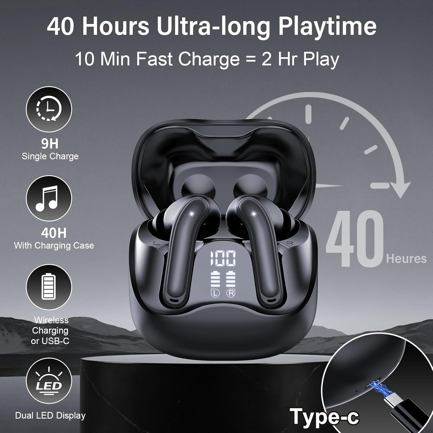 🔋 Up to 40 h Long Battery